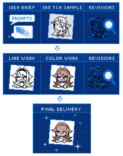 >(2.4.2) Extra revisions or major changes after sketch approval (pose, outfit, composition) may incur an additional fee depending on scope.